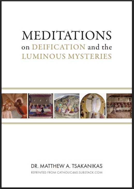 Consider purchasing this new and brief companion booklet [Meditations on Deification and the Luminous Mysteries] at Amazon. It is $9.99 in paperback and currently free digitally to Kindle Unlimited subscribers. The link to the booklet at Amazon is here: